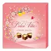 Этот набор конфет я получила в подарок, но видела его в продаже в популярных супермаркетах. На верхней стороне картонной упаковки отсутствует защитная прозрачная пленка, однако по бокам расположены две защитные наклейки. Я не наблюдаю лимонных ингредиентов в составе — лимон, похоже, присутствует только в качестве ароматизатора. Описание вкуса завлекательное – мне нравится лимонный акцент в десертах. Внутри упаковки находятся два пластиковых контейнера с конфетами, закрытыми пленкой сверху. В