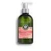 У меня есть шампунь объемом 300 мл (также предлагаются варианты 75 и 500). Бутылка небольшая и удобная в руке. Она зеленого цвета с оранжевой этикеткой. На обратной стороне размещена наклейка с информацией о составе и способах применения на четырех языках, а также указана страна производства — Франция. На ней имеется и стикер на русском языке. Моя упаковка оснащена практичной крышкой с защелкой. Шампунь имеет прозрачный розоватый оттенок и очень плотную текстуру, что позволяет экономно расходов