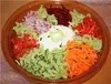 Салат "Радуга" мне очень нравится. Прост в приготовлении: на тарелке красиво выкладываешь различные овощи (морковь (можно по-корейски), огурцы, редис, перец, свеклу (даже сырую!), зелень (укроп, петрушка, по вкусу- ботву моркови). В некоторых случаях добавляют мясо, колбасу, яйца. В середину майонез или сметану. Короче, кому что нравится! Фантазируйте! Очень бюджетный вариант. Если нет какого-то овоща или просто не любите его, легко можно заменить другим. Вкус от этого не пострадает. Угодите лю