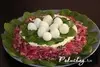 Такой салат мы делали на новый год, всем очень понравился вкус – достаточно оригинальный. Среди ингредиентов есть – красный лук, перепелиные яйца, шпинат, сыр, огурец… очень интересное сочетание. Достаточно сочный получается в целом – рекомендую попробовать.
