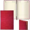 Подарили моему благоверному такой ежедневник на работе. Обложка из красного материала, выполненного под кожу, мягкого, приятного на ощупь. Срез сделан под позолоту – вблизи смотрится красиво, а издалека отражает как будто загрязнившаяся. Листочки приятного кремового цвета, с перфорированными уголками, с разлинейкой и календарем с открытой датой. Удобная закладка ляссе, длинная, хорошо закрепленная, на кончике со временем несколько разлахматилась. Линейка частовата – у мужа почерк разм